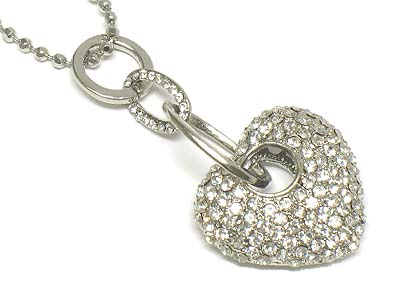 WHOLESALE CRYSTAL DENSE HEART PENDANT CHAIN LINKED NECKLACE 329077