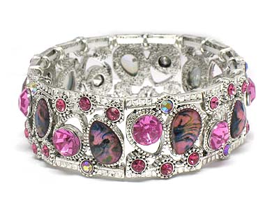 WHOLESALE CRYSTAL AND ABALON DECO STRETCH BRACELET 329081