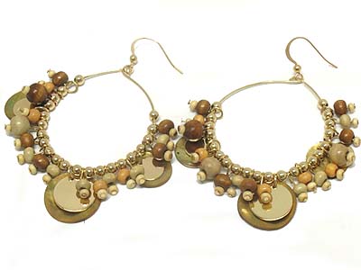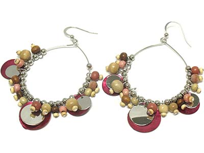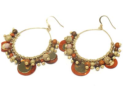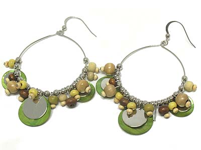 WHOLESALE SHELL AND METAL DISK AND MULTI WOOD CHARM EARRING 329103