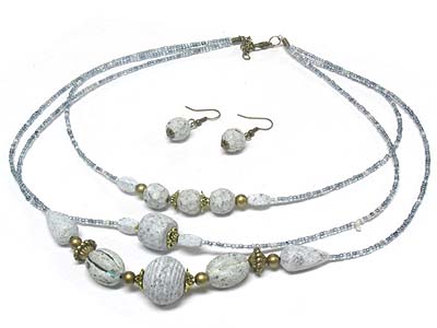 WHOLESALE NATURAL LOOK BEAD NECKLACE AND EARRING SET 329217