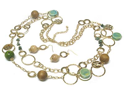 WHOLESALE ANTIQUE STYLE FIGURINE WOOD METLA DUAL STRANDS NECKLACE AND EARRING SET 329317