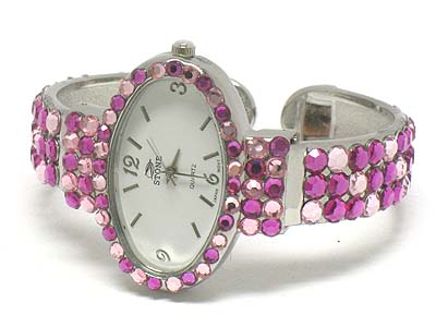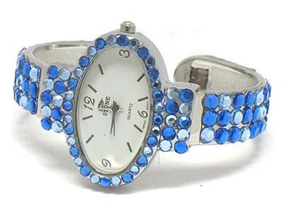 WHOLESALE FULL CRYSTAL OVAL FACE BANGLE WATCH 329356