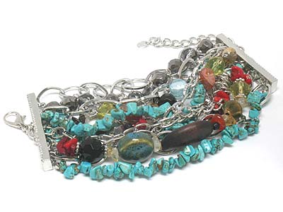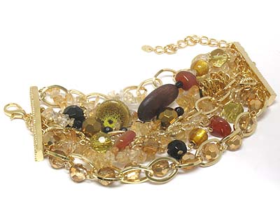 WHOLESALE BOUTIQUE STYLE SEMI PRECIOUS AND FIGURINEAND WOOD MIXED MULTI STRANDS METAL BRACELET - ONYX 329502