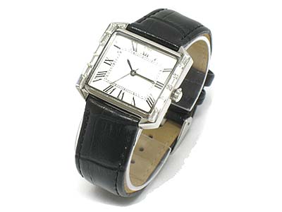WHOLESALE DESIGNER INSPIRED BAGUETE CRYSTAL AND GENUINE LEATHER BAND WATCH 329572