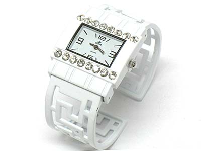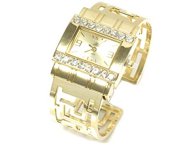 WHOLESALE DUAL CRYSTAL LINE CUT OUT METAL BANGLE WATCH 329660