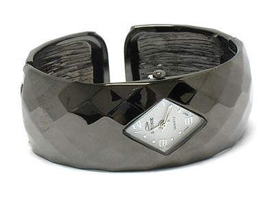 Paved face diamond cut metal bangle watch