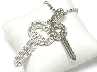 WHOLESALE CRYSTAL DUAL KEY PENDANT NECKLACE 329765