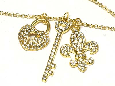WHOLESALE CRYSTAL FLEUR DE LIS KEY AND LOCK PENDANT NECKLACE 329769