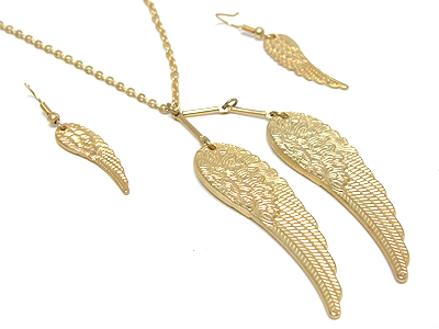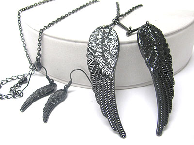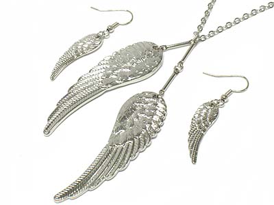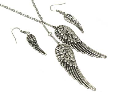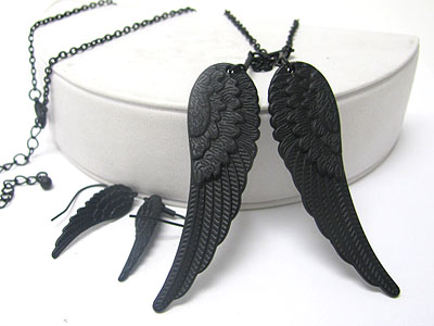 Angel wing pendant necklace and earring set