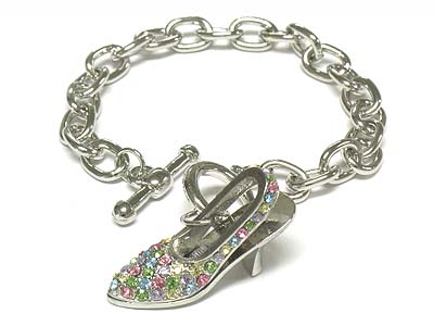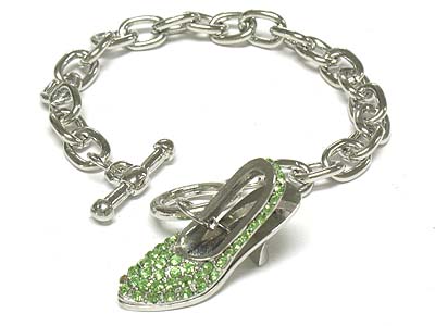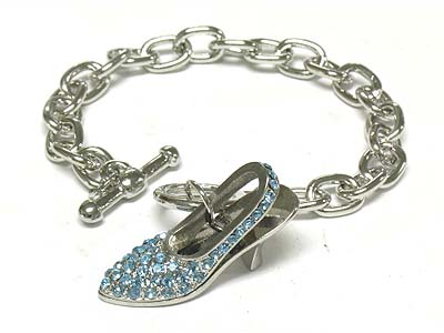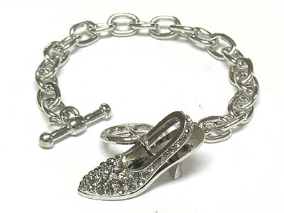 Crystal deco lady shoe charm toggle bracelet