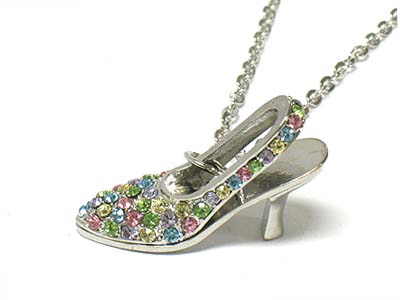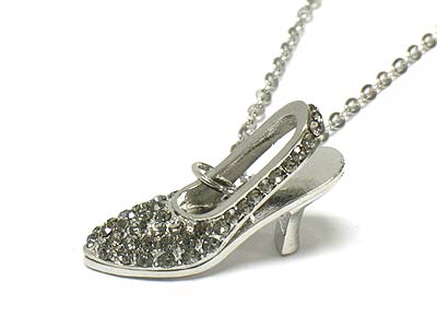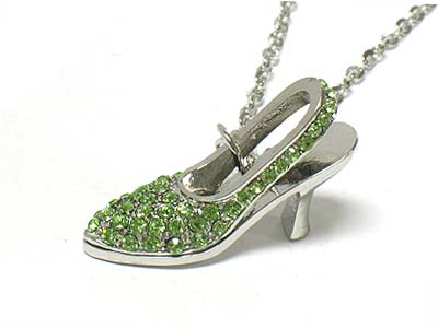 Crystal deco lady shoe pendant necklace