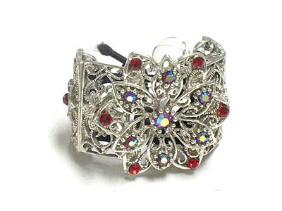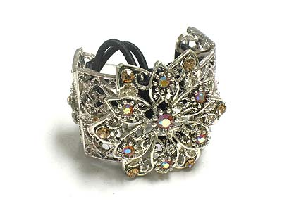 Crystal casting metal flower shape deco acryl bead pony tail holder