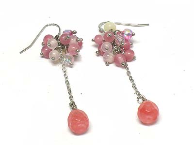 WHOLESALE SEMI PRECIOUS STONE CLUSTER AND FACET TEAR DROP EARRING 330071