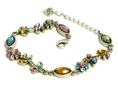 Austrian crystal flower design link bracelet