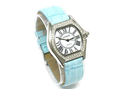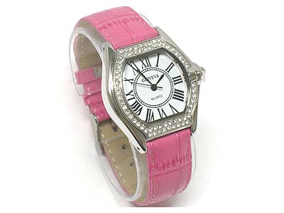 WHOLESALE DESIGNER INSPIRED CRYSTAL DECO GENUINE LEATHER BAND WATCH 330328