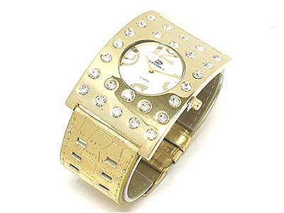 WHOLESALE CRYSTAL STONE DECO LARGE FACE LEATHER BAND WATCH 330336