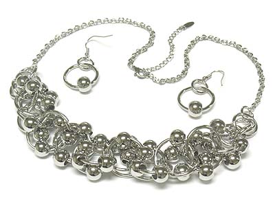 WHOLESALE METAL SQUARE AND ROUND RING LINKS NECKLACE AND EARRING SET 330407
