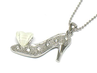 Made in korea whitegold plating crystal deco marcasite look shoe pendant necklace