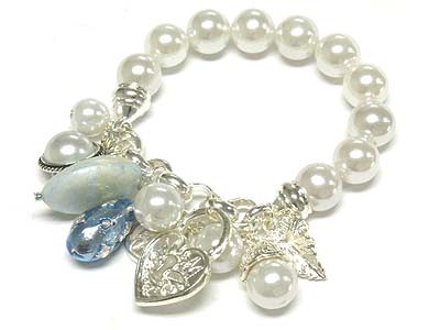 WHOLESALE MULTI CHARMS AND PEARL BALL BEAD STREACH BRACELET 330624