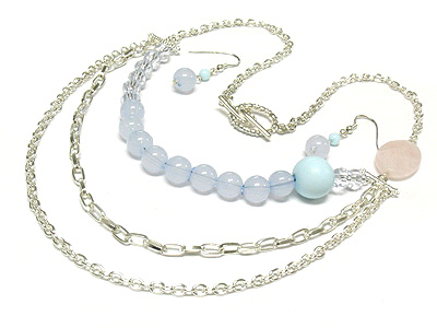 WHOLESALE GLASS BEAD DECO MULTI STRADN NECKLACE AND EARRING SET 331069