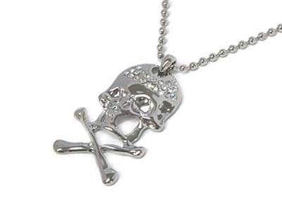 WHOLESALE CRYSTAL DECO SKULL AND BONES PENDANT NECKLACE 331089