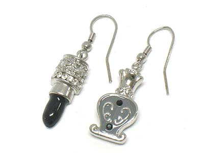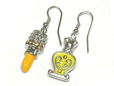 WHOLESALE CRYSTAL AND ENAMEL LIPSTICK AND PERFUME BOTTLE UNBALANCE EARRING 331177