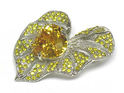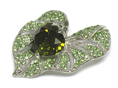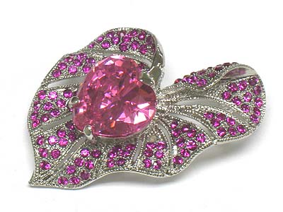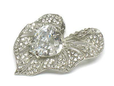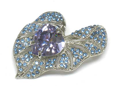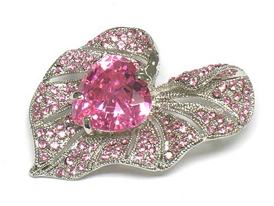 WHOLESALE CUBIC HEART ON CRYSTAL LEAF BROOCH 331274