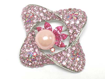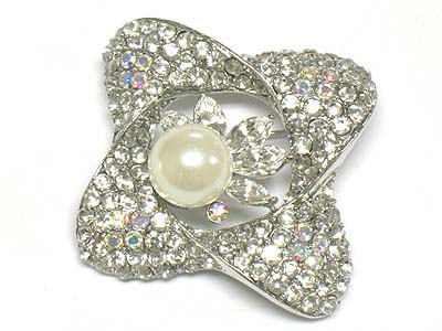 WHOLESALE CRYSTAL AND PEARL FLOWER SHAPE BROOCH 331421