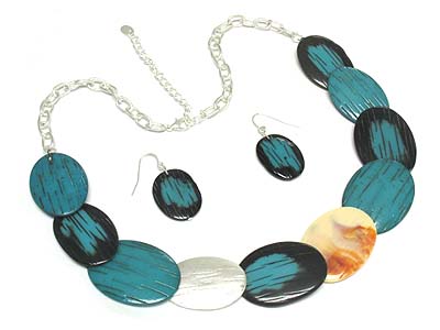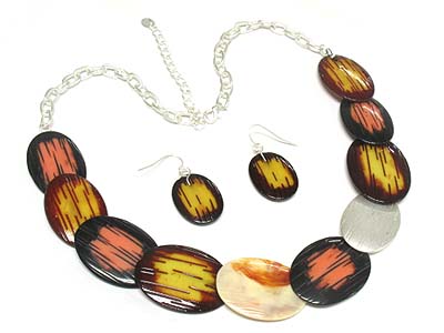 WHOLESALE ENAMEL COVER OVAL DISK LINK NECKLACE AND EARRING SET 331545