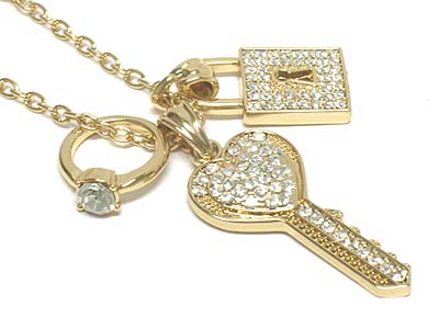 WHOLESALE CRYSTAL DECO KEY AND LOCK CHARMS NECKLACE 331600