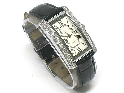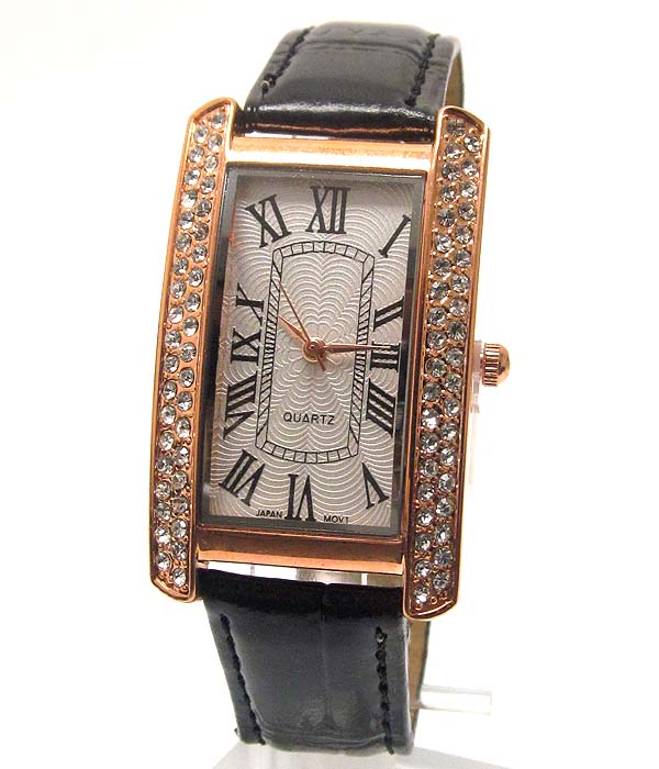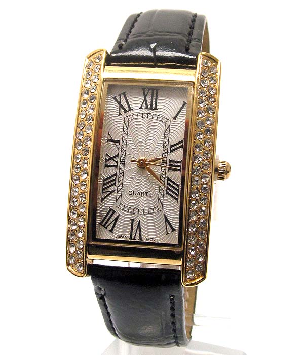 WHOLESALE DESIGNER INSPIRED CRYSTAL DECO FACE AND LEATHER BAND WATCH 331623