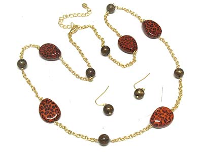 WHOLESALE ANIMAL SKIN PATTERN AND WOOD BEAD LINK NECKLACE AND EARRING SET 331651