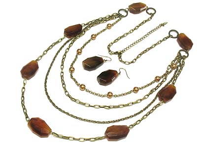 WHOLESALE MULTI STRAND FACET GLASS NUGGET AND METAL BEAD DECO NECKLACE AND EARRING SET 331655