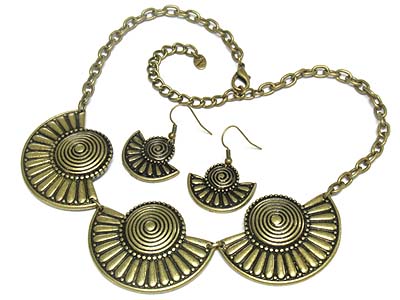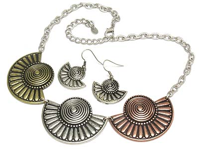 WHOLESALE ANTIQUE STYLE TRI METAL DECO NECKLACE AND EARRING SET 331828