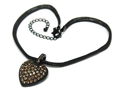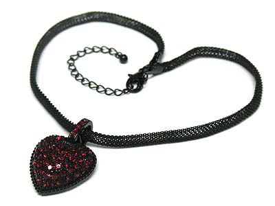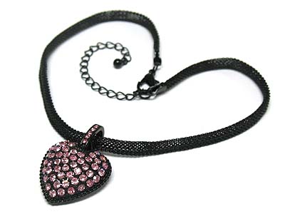 WHOLESALE BLACK MESH CHAIN CRYSTAL PUFFY HEART NECKLACE 331887