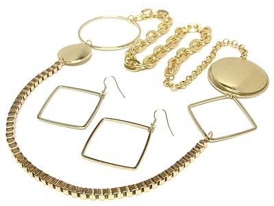 WHOLESALE METAL BARGUETTE CHAIN AND ROUND DISK LINK NECKLACE AND EARRING SET 331901