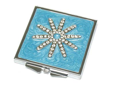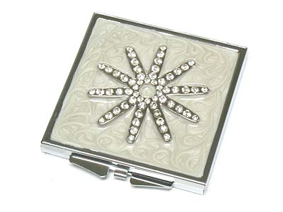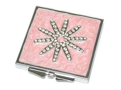 WHOLESALE CRYSTAL FLOWER TOP SQUARE COMPACT MIRROR - TWO SIDE MIRROR 332004
