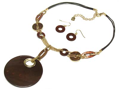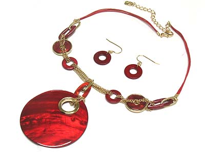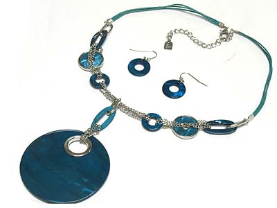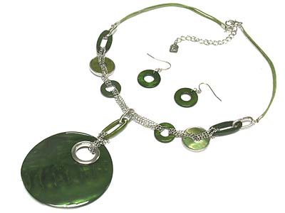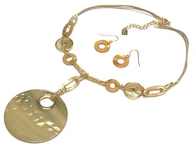WHOLESALE LARGE ROUND SHELL DISK PENDANT NECKLACE AND EARRING SET 332210