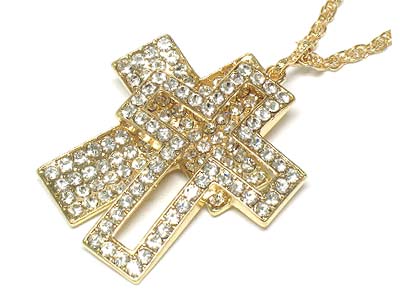 WHOLESALE CRYSTAL DOUBLE LAYER CROSS PENDANT NECKLACE 332276