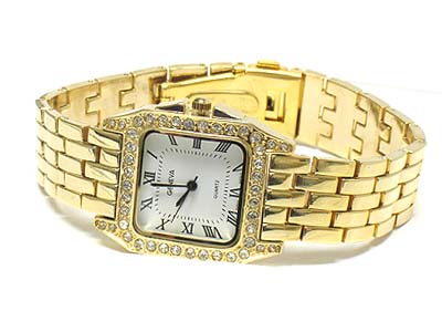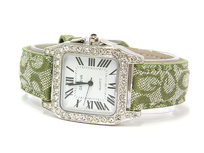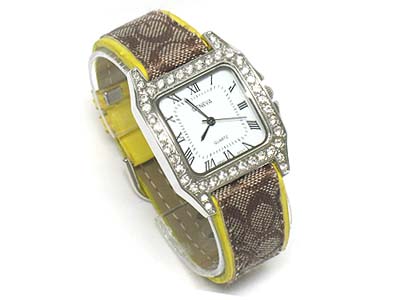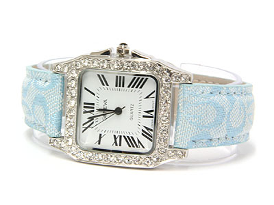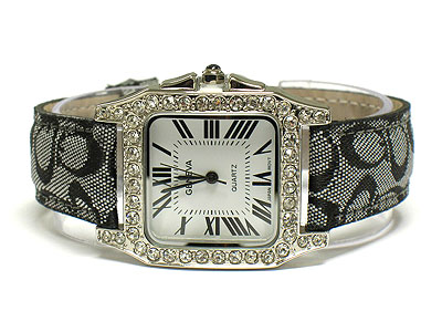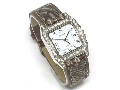 WHOLESALE DESIGNER INSPIRED NEW LEATHER BAND AND CRYSTAL SIDE FACE WATCH 332330