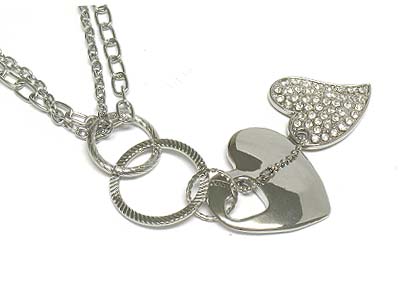 Crystal paved heart and metal heart link necklace