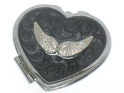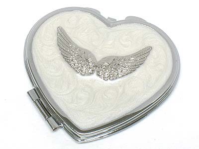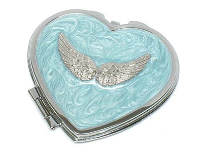WHOLESALE METAL WING CASTING AND EPOXY HEART COMPACT MIRROR 332422