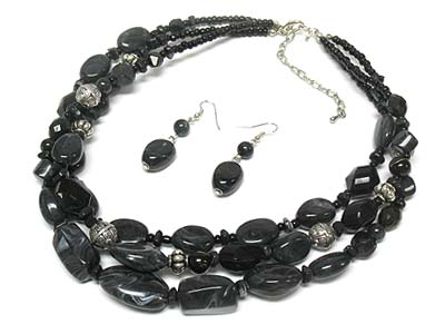WHOLESALE MULTI STRAND MARBLE AND GLASS NECKLACE AND EARRING SET 332576