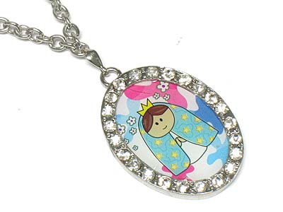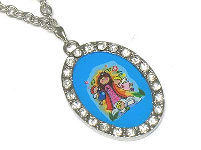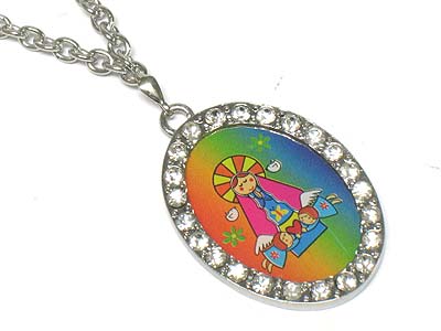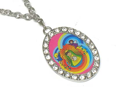 WHOLESALE CRYSTAL SIDE DECO GUADALUPE OVAL PENDANT NECKLACE - PORFIS AYUDAME A PORTARME DIEN 332597