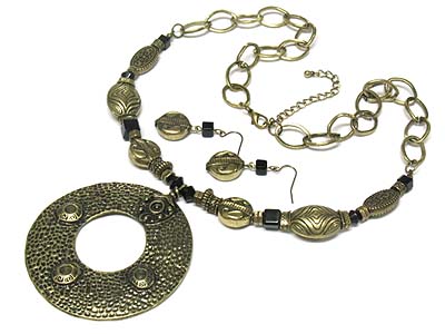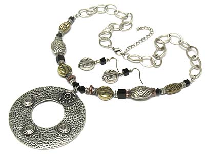 WHOLESALE METAL STUD LARGE DONUT PENDANT AND DISK LINK NECKLACE AND EARRING SET 332638