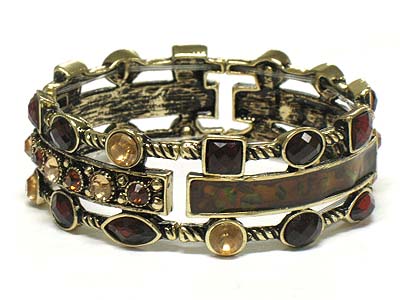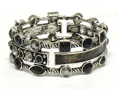 Crystal pave casting metal stretch bracelet