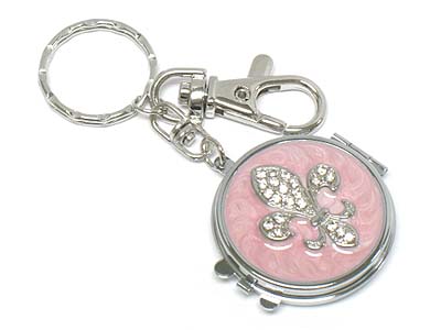WHOLESALE CRYSTAL STONE FLEUR DE LIS COMPACT MIRROR KEY CHAIN 332735