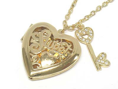 WHOLESALE FILGREE HEART LOCKET AND CRYSTAL DECO KEY CHARM NECKLACE 332823