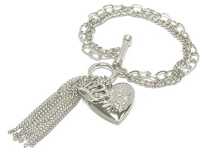 WHOLESALE METAL HEART LOCKET AND CROWN AND MULTI ROW CHARMS TOGGLE BRACELET 332908