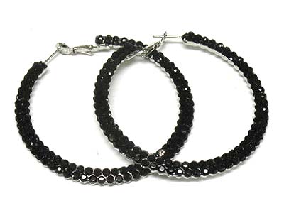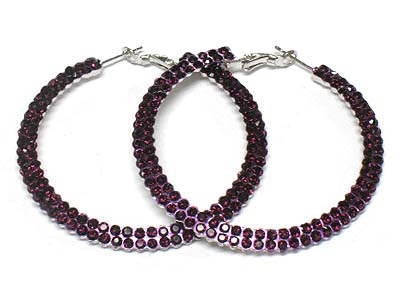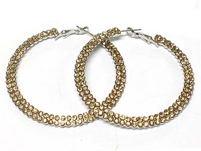 Dual line crystal deco metal hoop earring - hoops